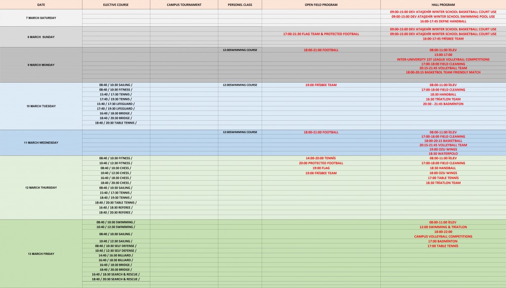 We present to you the Activity Bulletin for the week of March 7-13 at the Sports Center.
