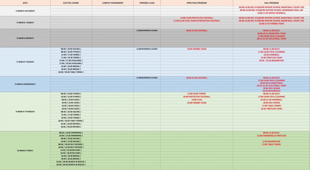 The Sports Center presents the Activity Bulletin for the week of March 14-20 for your information.