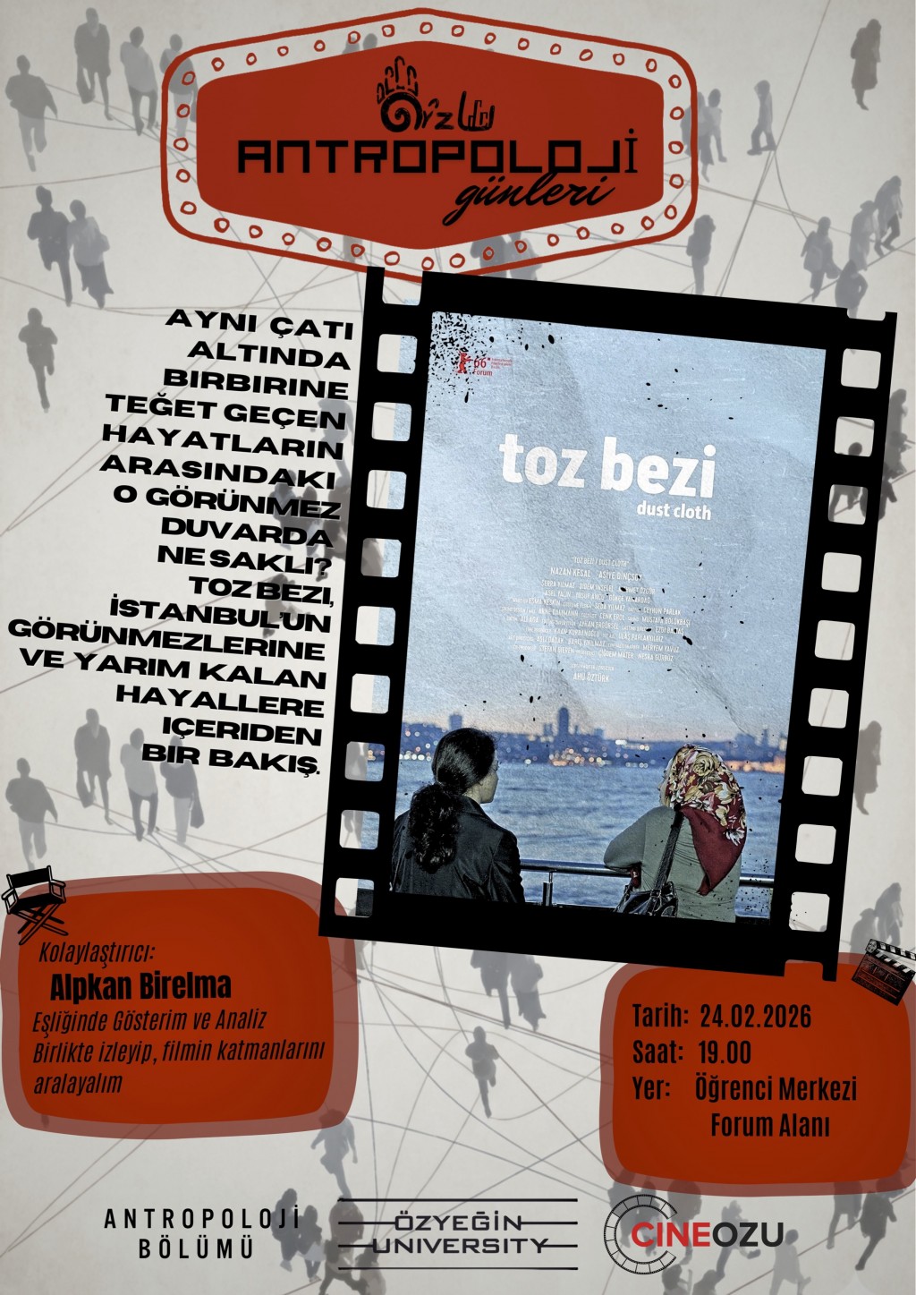 Antropoloji Bölümü Öğretim Üyesi Alpkan Birelma'ın tartışmacı olarak katılacağı etkinlikte, filmin ardından "İstanbul'un görünmezleri ve yarım kalan hayalleri"ni konuşacağız.