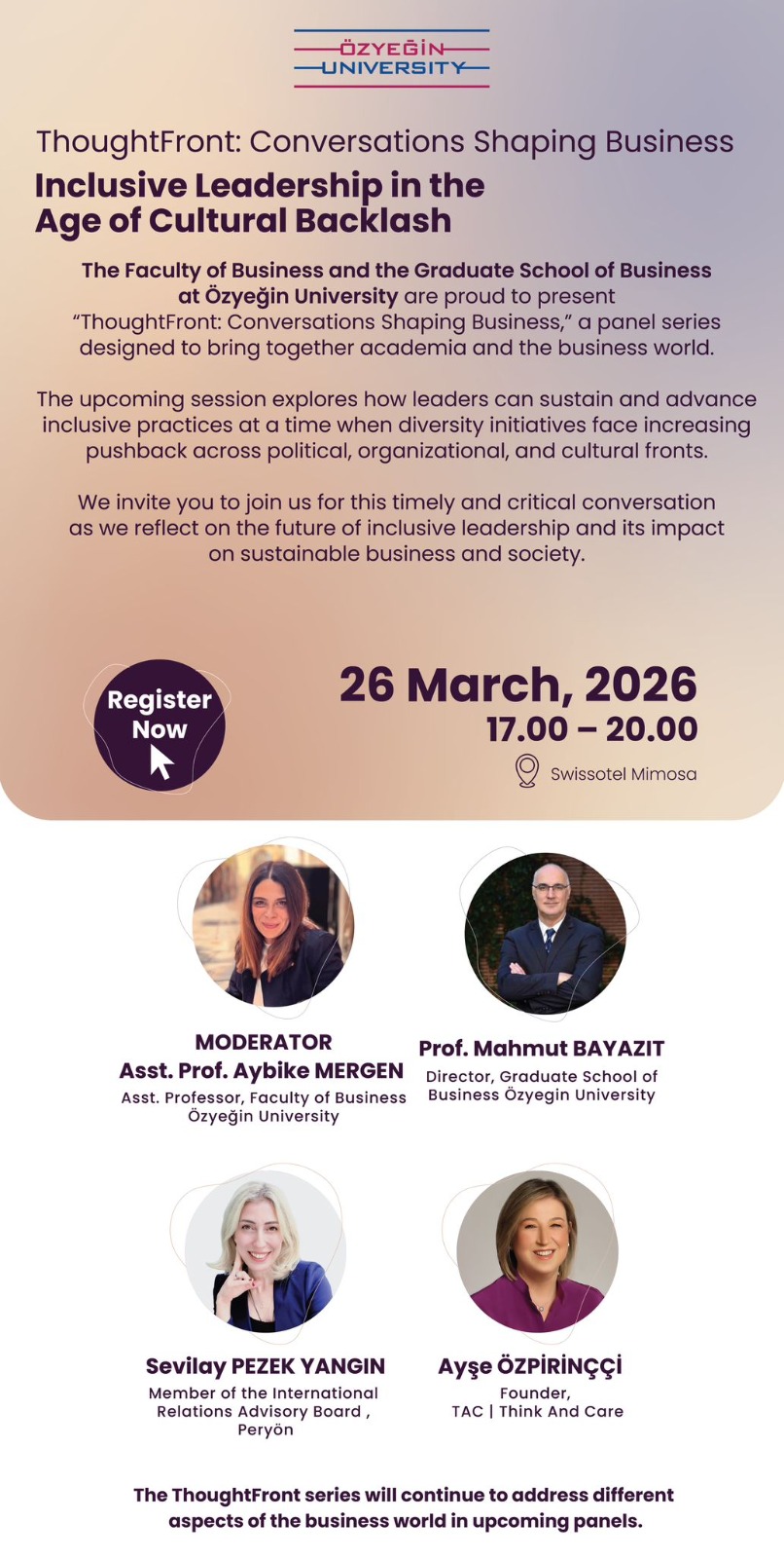 We are pleased to invite you to the next session of ThoughtFront: Conversations Shaping Business, hosted by Özyeğin University.