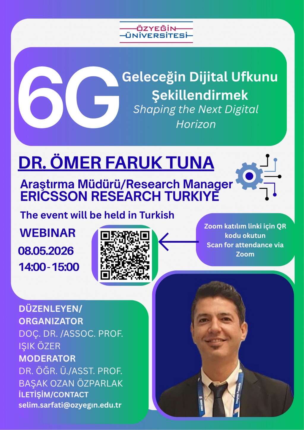 The event titled “6G: Shaping the Next Digital Horizon”, organized by the Faculty of Law at Özyeğin University, will be held online via Zoom on Friday, 8 May 2026, between 14:00 and 15:00.