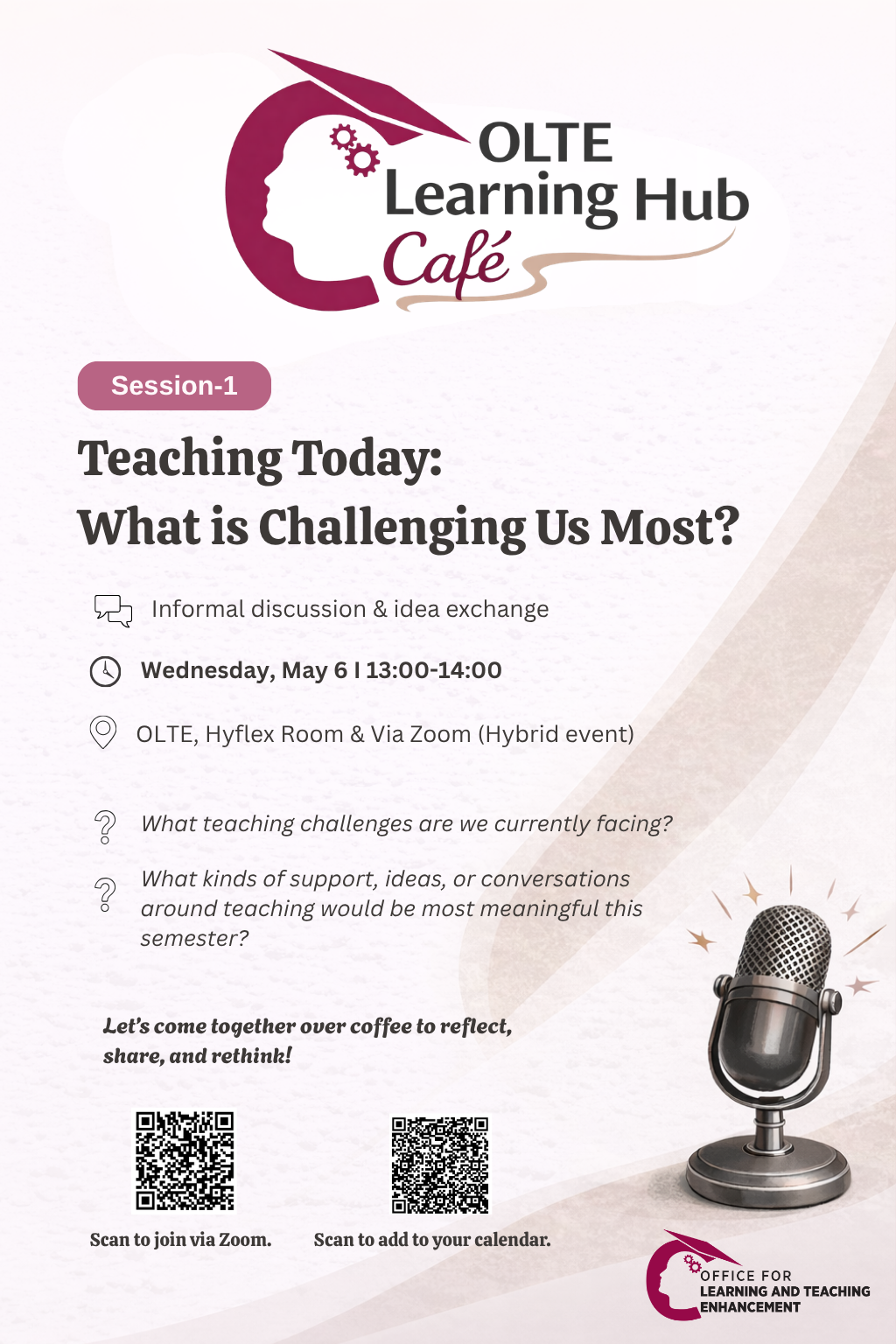 Sizi, öğretim üyelerinin günümüz öğretim pratiklerini kahve eşliğinde değerlendirebileceği samimi bir buluşma olan OLTE Learning Hub Café’nin ilk oturumuna davet etmekten memnuniyet duyarız.