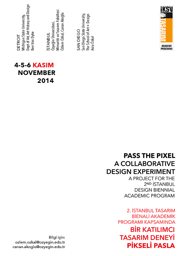Projemiz, II. İstanbul Tasarım Bienali’nin ‘Gelecek Artık Eskisi gibi Değil’ başlığıyla ilişkili olarak, katılımcı tasarım süreçlerini deneyimlemek ve sonuçlarının yakın gelecekteki tasarım pratiğine olası etkilerini tartışmak amacını taşıyan bir çalıştaydan oluşmaktadır. Bu çalıştayda, yurtiçi ve yurtdışındaki farklı noktalardan danışmanlarıyla birlikte internet üzerinden bir araya gelecek olan öğrenciler, eşzamanlı olarak bir tasarım projesi gerçekleştireceklerdir. Danışmanlar tarafından içeriği ve akışı ortaklaşa belirlenecek olan bu tasarım projesi her öğrencinin tasarıma eşit katkısını sağlayacak şekilde, ‘insan-bilgisayar’ (human-computing) ve ‘kitle kaynak’ (crowdsourcing) yöntemlerini tasarım sürecine taşıyan ‘şartlı tasarım’ (conditional design) prensiplerinden yararlanılarak düzenlenecektir.